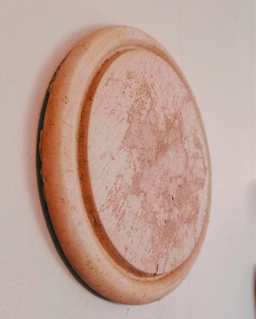 At the height of their brickmaking business, the Fornace Ferretti clay bricks and roof tiles became saught after for the particular shade of red their terracotta clay produced. It was a shade that came to be known as “Rosso Ferretti”, i.e. “Ferretti Red”, after my maternal family surname. The performative gesture of casting moulds of my mother’s bread boards out of South African terracotta clay that, when left unfired, is subject to breaking or reshaping in water, is a meditation on the shifting soil and transnational foundations I come from. It is a meditation on the terroirs that have formed me and through which I continually unlearn and reconfigure collective histories. With over fourty years’ worth of use, this battered, beloved board has provided a soft landing for many meals and many communal moments of gathering.