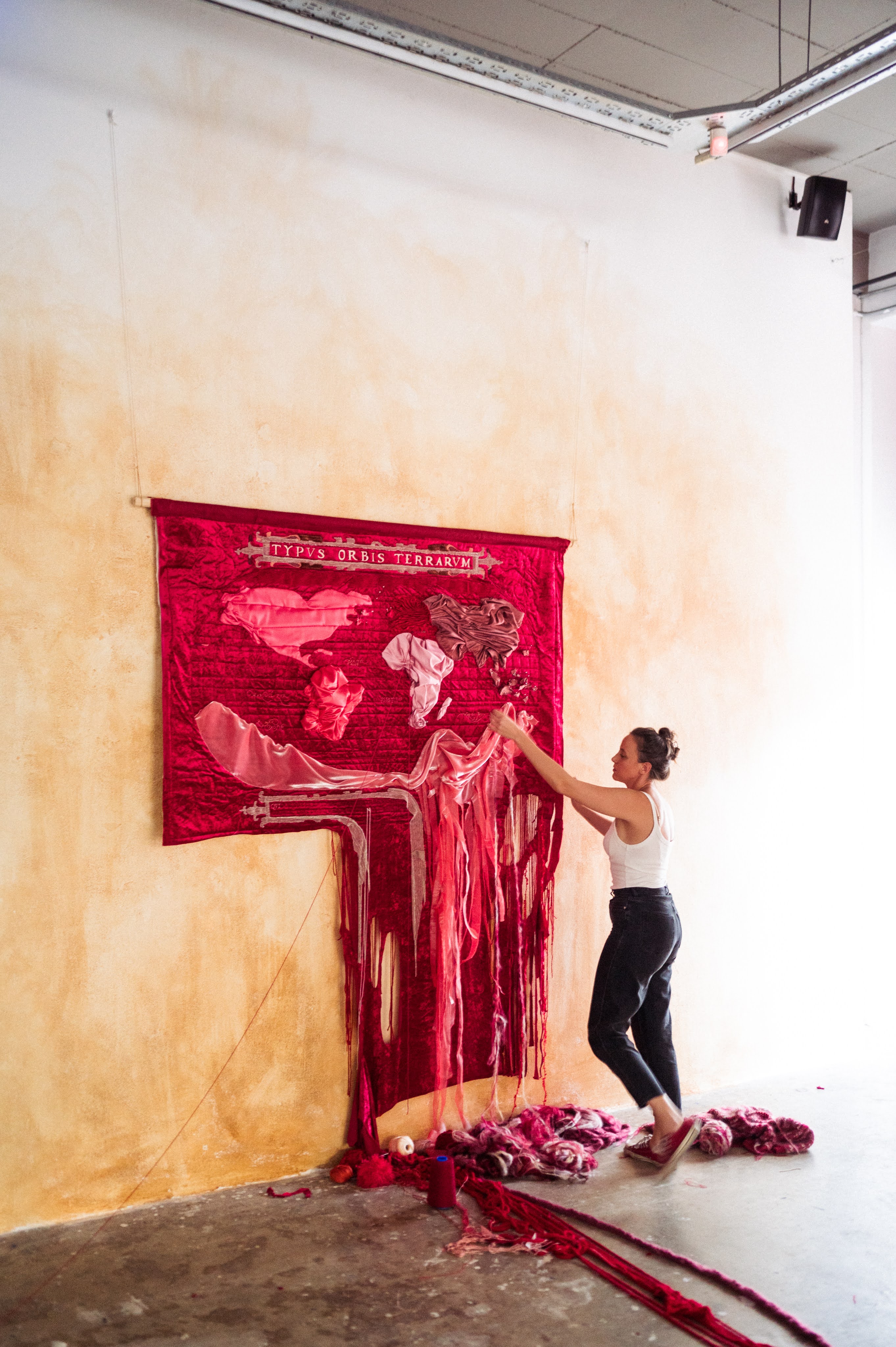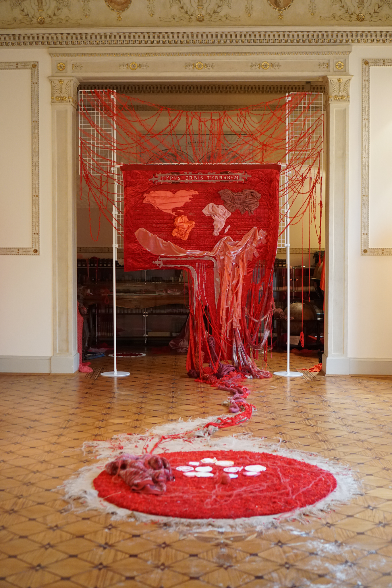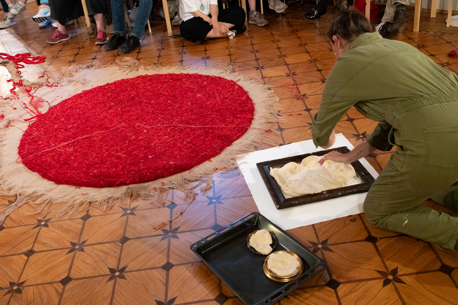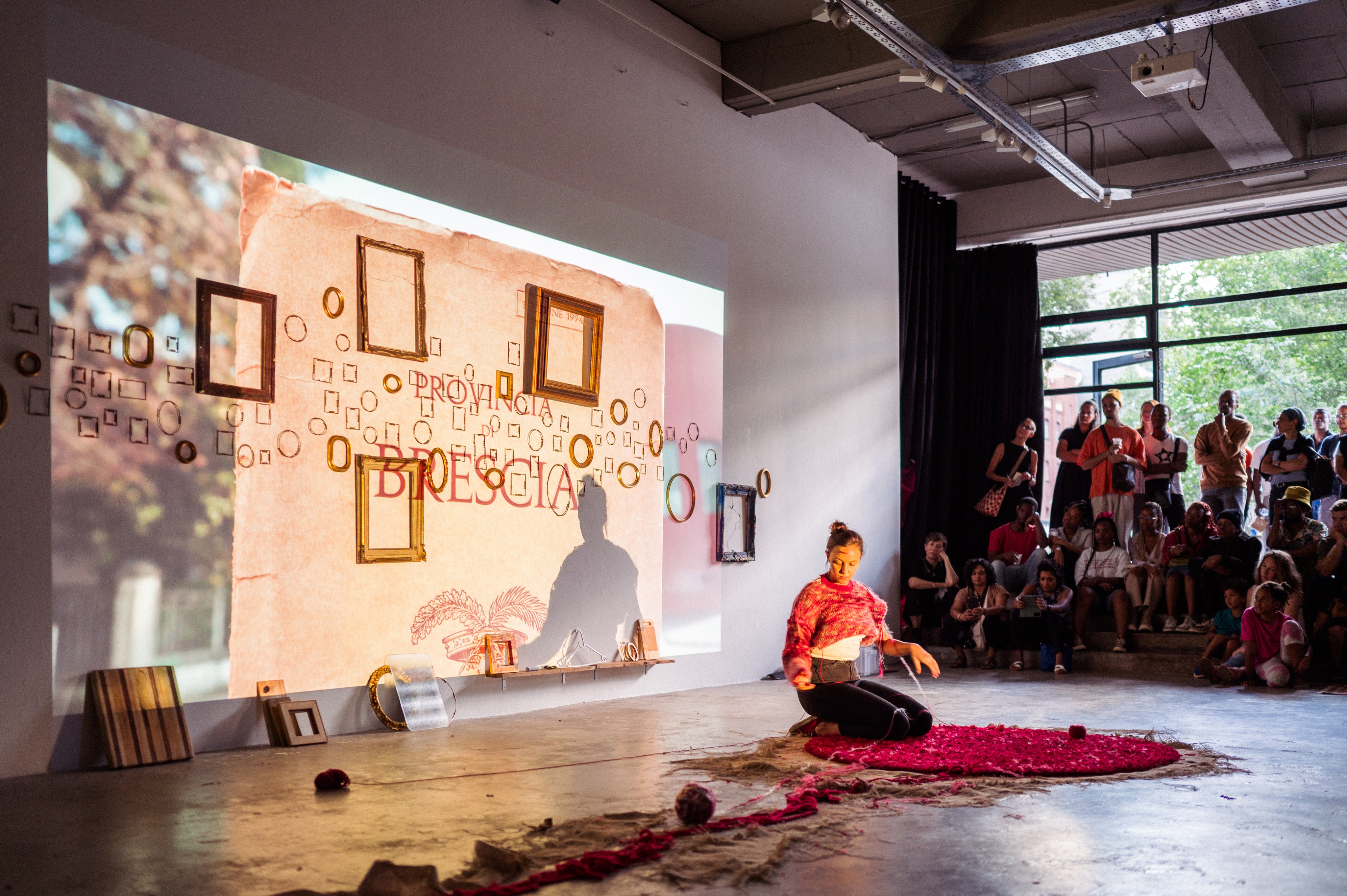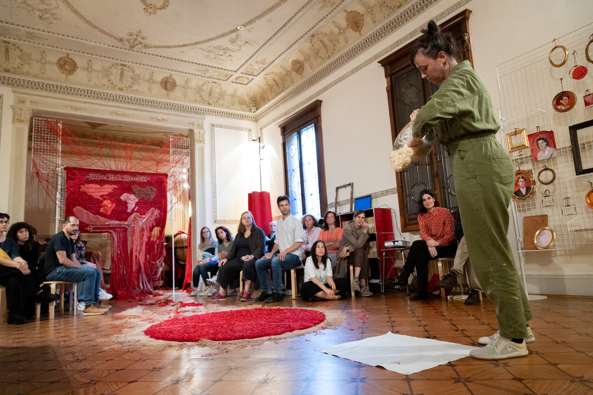 The performance Things I Found Nelle Viscere tells a story about unravelling a colonial history of knowing, being and doing, with a particular focus on unravelling art at the intersection between aesthetics, aesthesis and God. The performance activates the entire exhibition space and the artworks in it. It considers the whole space as a home made up of assorted living rooms, storerooms, corridors and kitchens, all of which are interacted with as the story progresses. This performance invites the audience into the story of this tender albeit fractured home, offering moments to witness, commune and sit-with the work over shared food and stories.
